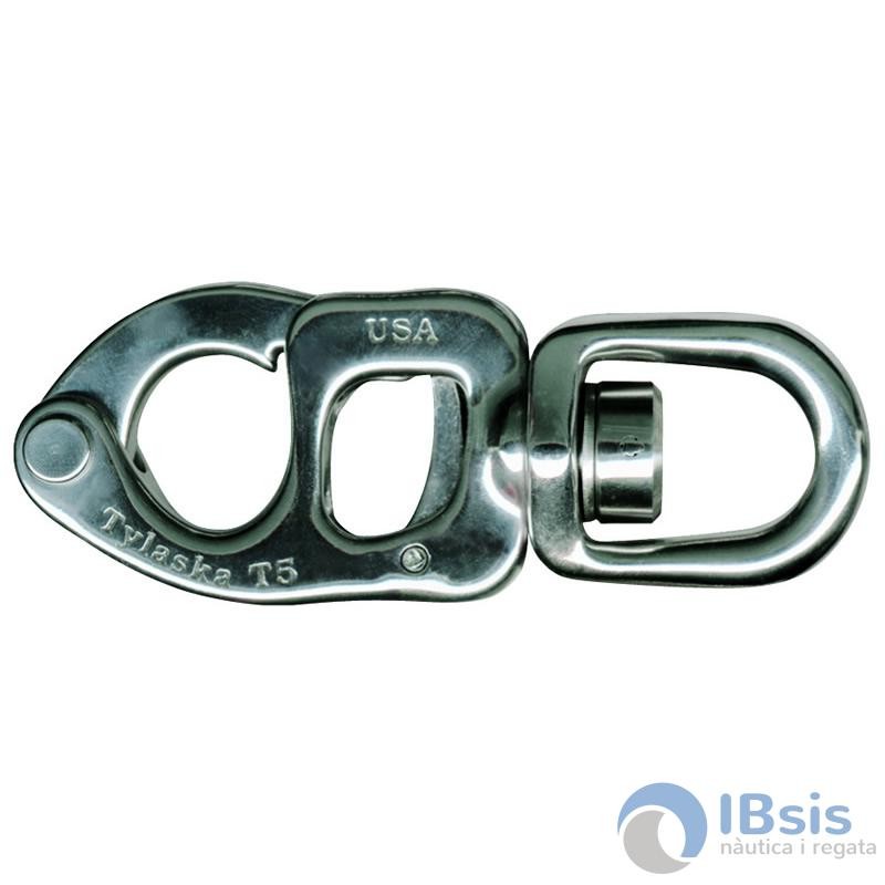 Los grilletes a presión Tylaska T5 son perfectos para aplicaciones en embarcaciones pequeñas que requieren una gran resistencia y poco peso. Tienen una resistencia a la rotura de 5000 libras y pesan solo 2,2 onzas en la configuración de fianza estándar. Ideal para J-24, Mumm 30 y embarcaciones similares. Los grilletes T5 estándar y de fianza grande están disponibles con un acabado decorativo de PVD de bronce o de óxido negro. El T5 está diseñado solo para aplicaciones de carga estática y NO está aprobado para aplicaciones de elevación.