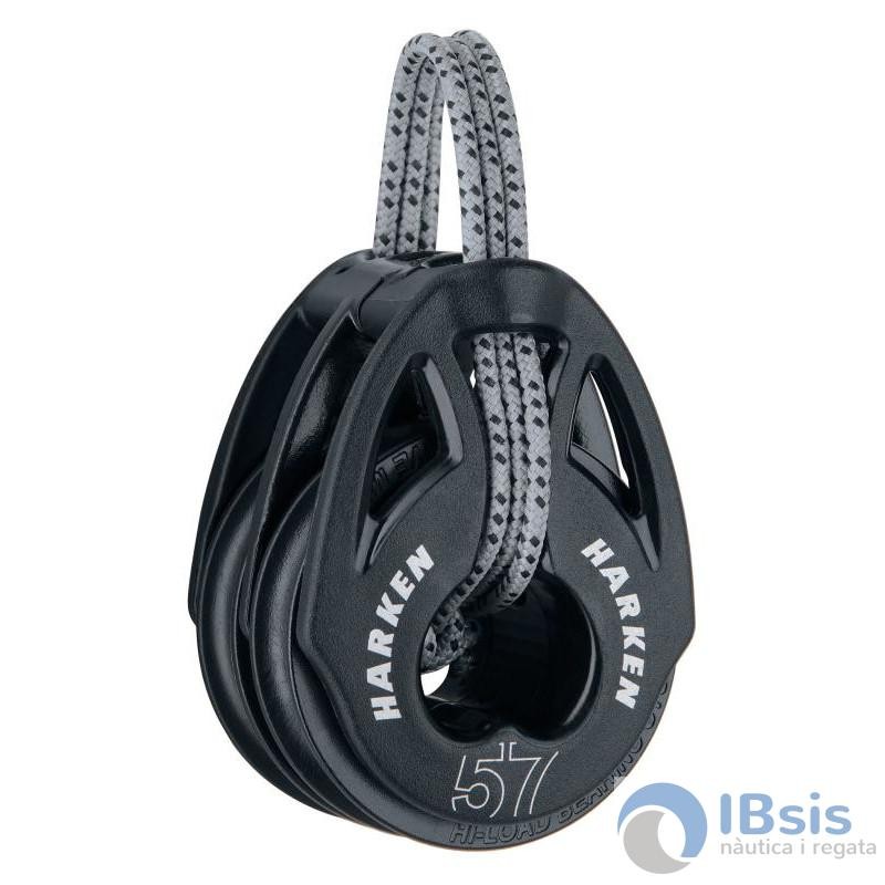 Harken ofrece éstas Poleas patentadas, con fijación flexible para cargas elevadas, en tamaños de 29 a 57 mm. Las Poleas presentan Roldanas de Composite que giran libremente sobre Rodamientos a bolas de Delrin® con ranuras de rodadura curvadas. No tienen ningún grillete o remache de metal, siendo las poleas de fijación flexible, más ligeras que Harken haya diseñado nunca.