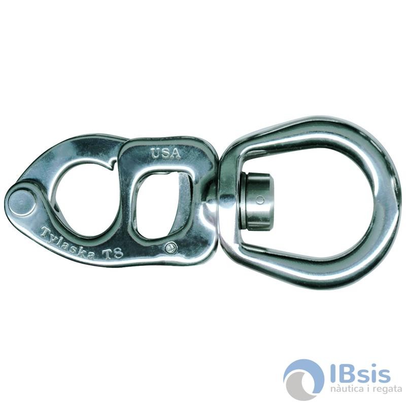 Tylaska T8 Snap Shackles are perfect for applications requiring immense strength and low weight. They have a breaking strength of 8,000 pounds and weigh only 3.5 ounces in the standard bail configuration. Ideal for the 24 to 36 foot sailboat. The T8 standard and large bail snap shackles are available with a decorative bronze PVD or black oxide finish. The T8 is intended for static load applications only and is NOT approved for lifting applications..